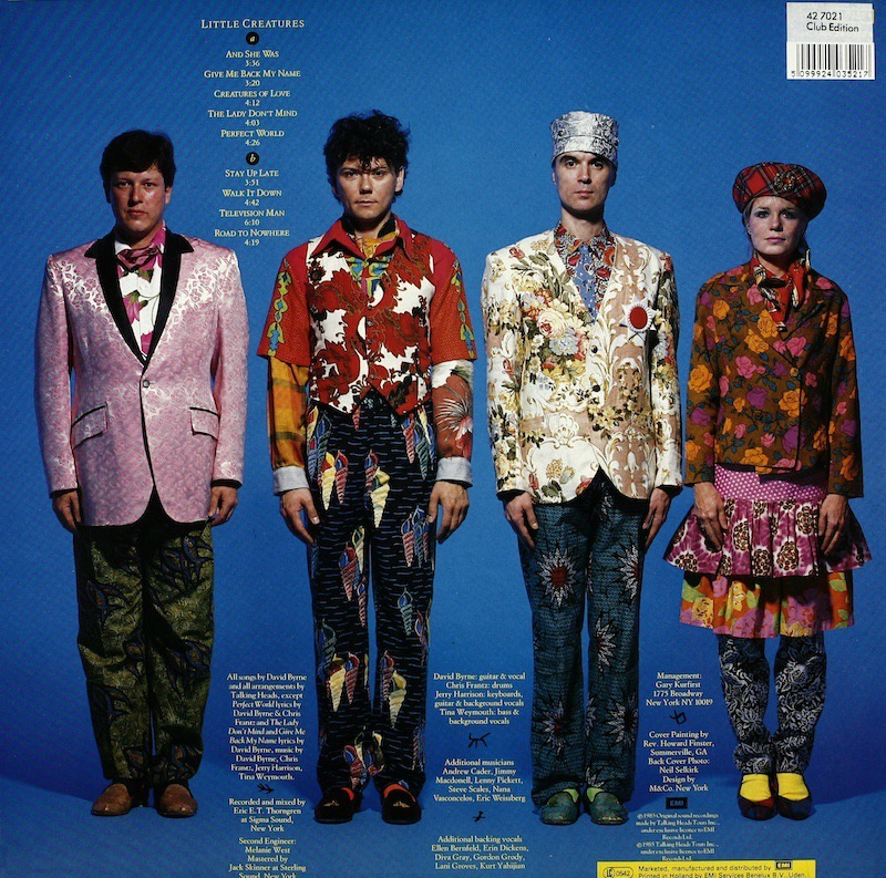 En la tapa se puede ver a la banda vistiendo prendas piscodélicas, algo muy propio de David Byrne.
